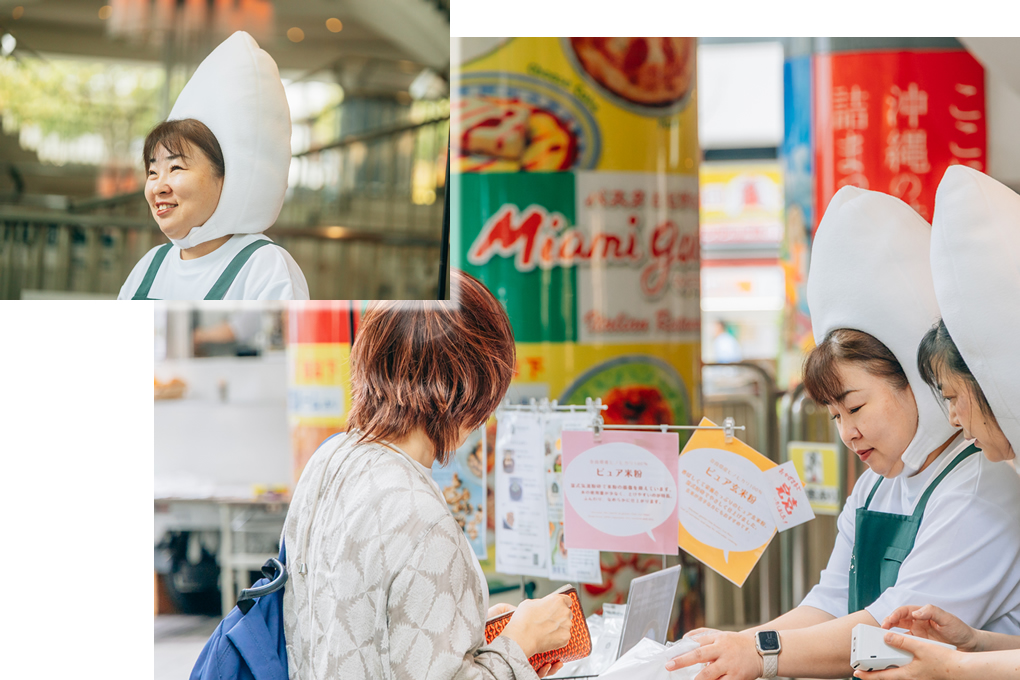 米は契約農家が決まっており、自社で精製して商品化というフローができており、無添加にこだわっているのが自慢のポイント。しかもグルテンフリー(グルテンフリー認証取得済)のため、小麦アレルギーの方でも召し上がることができ、購入者からは”小麦といわれてもわからない”という声が多い。韓国、シンガポール、ハワイ、香港での出店経験も活かし、もっと海外へ展開をしたいと考えているとのこと。担当の小川さんは「おいしいから選んでもらえる米粉の商品を開発します」と話してくれました。