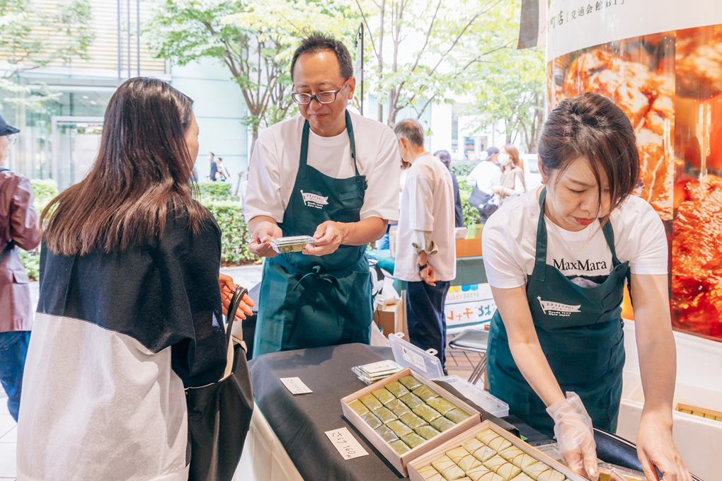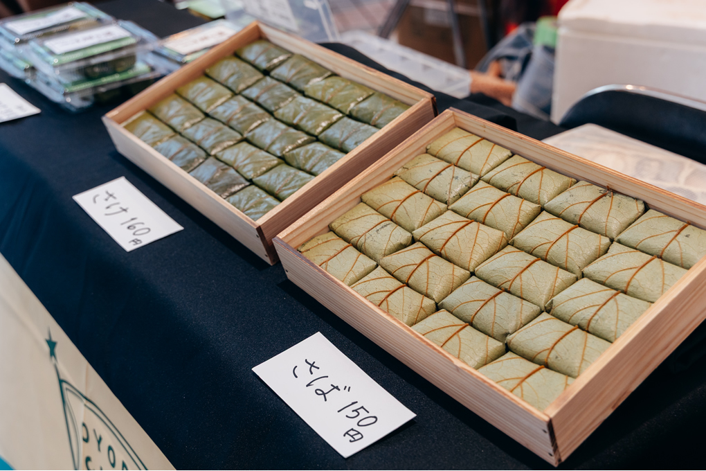 東京、有楽町の出店は二日目(10月13日)のみだった「割烹三笠」の上杉さん。今回は三笠の柿の葉寿司を東京の方に広めたいと出品。奈良吉野の伝統料理である柿の葉寿司だが、割烹料理店(割烹三笠)を本業で営む背景から新鮮な鯖や鮭を手に入れるルートを確立されています。また柿の葉は地元産を使い、店で塩漬けにしているというこだわり。