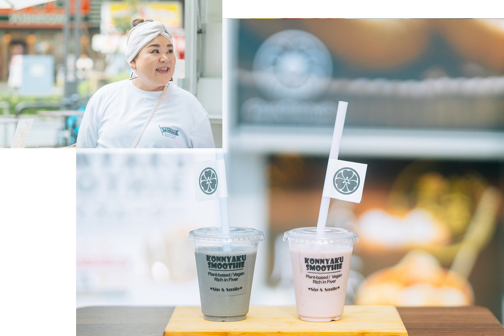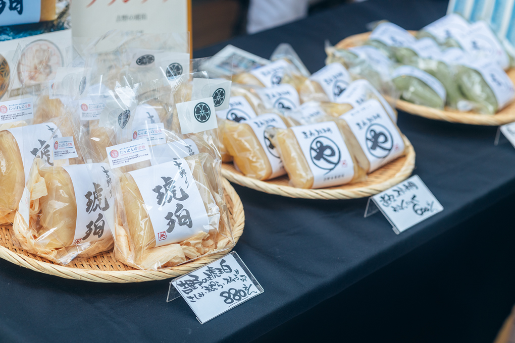 「にっぽんの宝物」プロジェクト2025年世界大会で3位入賞という「工房やぶせ」さんの自信作”吉野の琥珀”(こんにゃく)の他、さしみこんにゃく・煮炊きステーキ用こんにゃく・こんにゃくスムージー・こんにゃくからあげを出品されました。